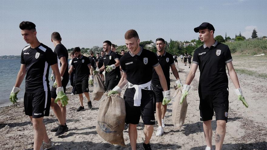 Οι νεαροί ποδοσφαιριστές συμμετείχαν στον καθαρισμό της παραλίας στον οικισμό Αλυκές στην Επανομή Θεσσαλονίκης, συμμετέχοντας στην ενέργεια του PAOK Action και της περιβαλλοντικής οργάνωσης iSea.