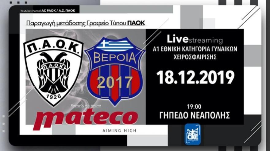 Σε Live Streaming το ΠΑΟΚ Mateco-Βέροια 2017