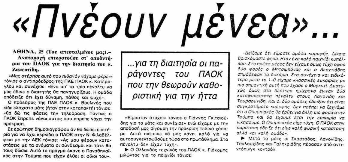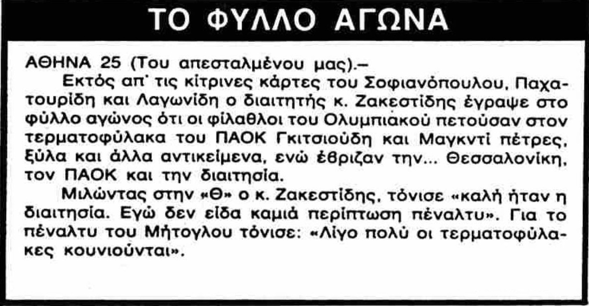 Και αν έκαναν τον κόπο και πήγαιναν στην εκκλησία, ας άναβαν και μία στον Θεσσαλονικιό ρέφερι που ακούει στο όνομα Ζακεστίδης, για τον οποίον μόνο κατάρες και αναθέματα ακουγόταν από τους ανθρώπους του ΠΑΟΚ μετά το τέλος του συγκεκριμένου παιχνιδιού.
