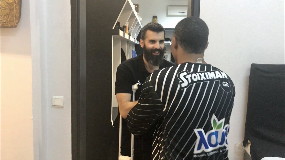 Παρά το γεγονός πως ο καλαθοσφαιριστής του ΠΑΟΚ υποβλήθηκε τις προηγούμενες ημέρες σε επέμβαση αποκατάστασης μετά τη ρήξη χιαστού που υπέστη στο γόνατό του, σήμερα θέλησε να βρίσκεται στο πλευρό των συμπαικτών του, ακόμη και με τις πατερίτσες...
