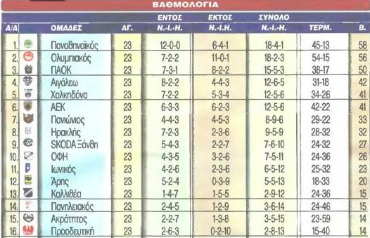 Η βαθμολογία μετά την 23η αγωνιστική ...