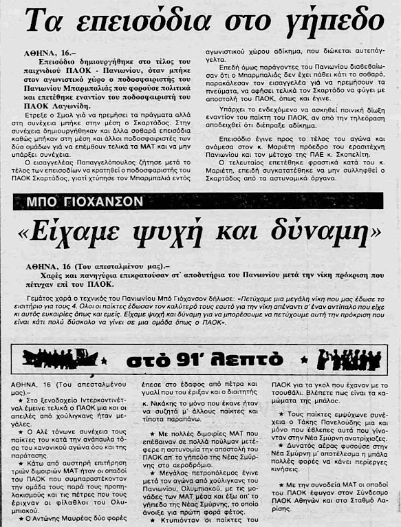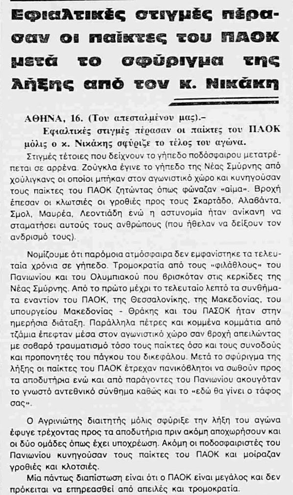* Στην αρχική εικόνα διακρίνονται παίκτες των δύο ομάδων να συμπλέκονται, λίγο μετά το σφύριγμα της λήξης ης αναμέτρησης!