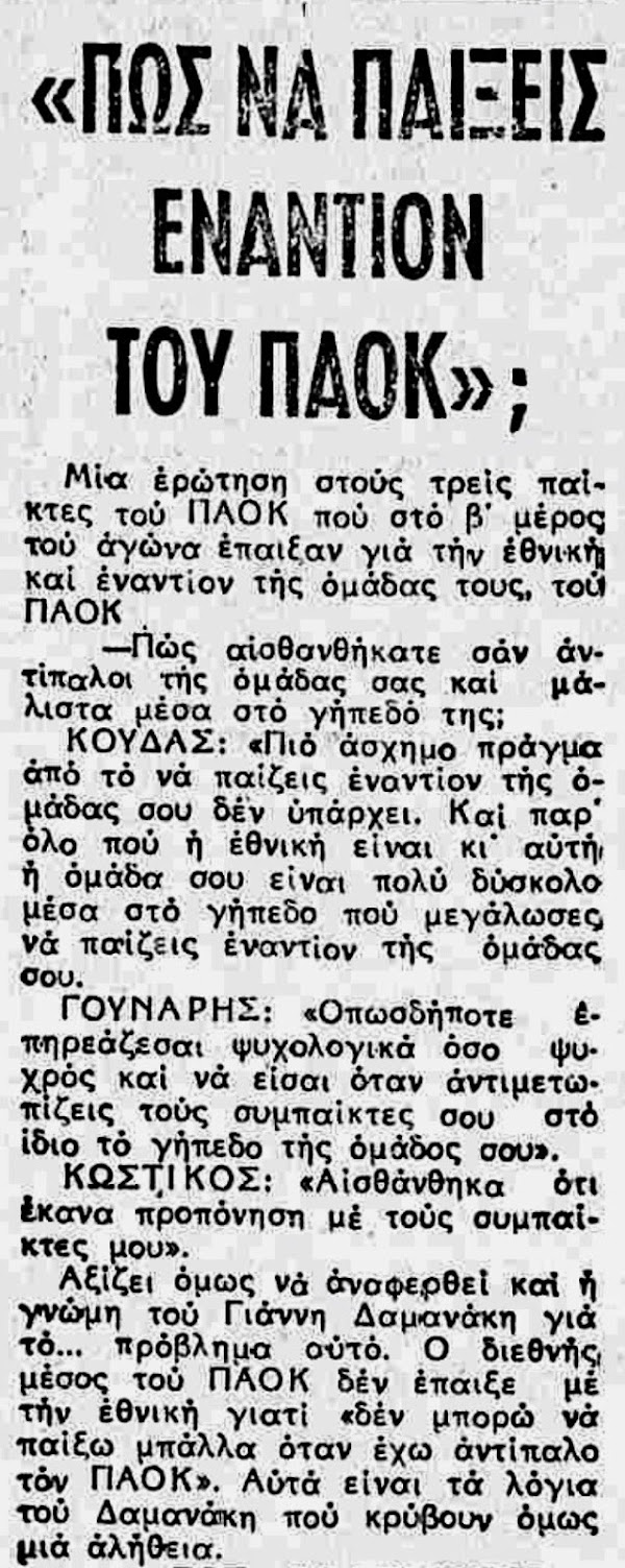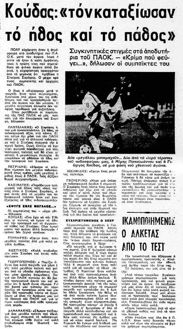 Κορυφαίοι από πλευράς ΠΑΟΚ οι Σαράφης, Κούδας, Τριανταφυλλίδης, Γεωργόπουλος και από την Εθνική οι Παπαϊωάννου, Δομάζος, Κουσουλάκης, Ορφανίδης