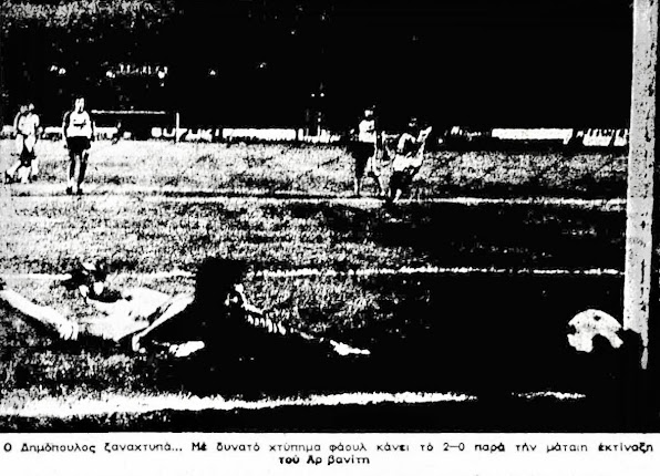 Το σκορ άνοιξε στο 8' με κεφαλιά του Δημόπουλου μετά από σέντρα του Γεωργόπουλου και δέκα λεπτά αργότερα ο Κωστίκος πάσαρε στον Δημόπουλο και αυτός έγραψε το 2-0.