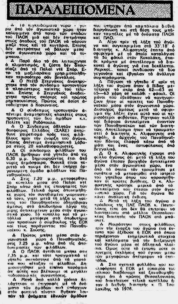 Στο 12' ο φ@σούλ@ς χρεώθηκε το 4ο φάουλ, δέχτηκε στη συνέχεια και τεχνική ποινή, μια ποινή που ο Αλιφραγκής στη συνέχεια την χρέωσε στον Κατσούλη, αφήνοντας τον σέντερ και μετέπειτα προδότη, στο παιχνίδι. Στο 25' αποχώρησε με 5 φάουλ ο φυσικός ηγέτης εκείνης της ομάδας Μάνθος Κατσούλης και λίγο αργότερα ο Κοκολάκης για τον ίδιο λόγο, με το ταμπλό να γράφει 56-46 υπέρ του ΠΑΟΚ στο 33'!!! Κι όμως αυτή η κούπα χάθηκε και ας μην υπήρχε τότε το τρίποντο!