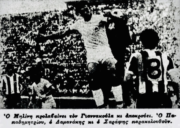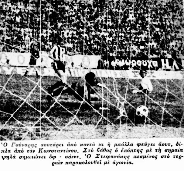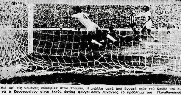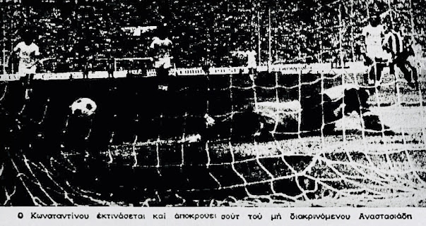 * Στην αρχική εικόνα φαίνεται ο Κωνσταντίνου να μπλοκάρει την μπάλα πιεζόμενος από τον Ορφανό, ενώ δεξιά διακρίνεται ο Αναστασιάδης