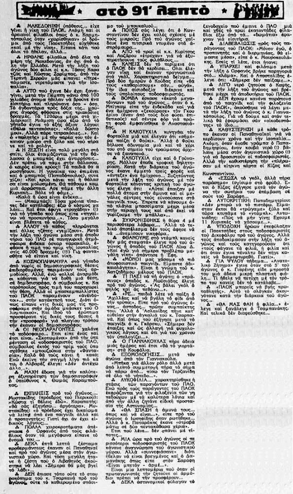 * Αυτά γινόταν στην Ελλάδα εκείνα τα χρόνια! Σφαγές χωρίς να κρατιούνται ούτε τα προσχήματα! Σφαγές που μπορεί να στέρησαν από την ομάδα μας τίτλους, όμως συσπείρωσαν γύρω της χιλιάδες ανθρώπους από διαφορά μέρη της χώρας, οι οποίοι έβλεπαν τις αδικίες που γινόταν και συστρατεύτηκαν κάτω από το ασπρόμαυρο λάβαρο!
