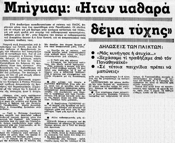 Για εκείνο το παιχνίδι -ακόμη και σήμερα- ακούγονται πολλά, καθώς η εικόνα της ομάδας δεν ήταν εναρμονισμένη με τη συνολική παρουσία του Δικεφάλου στο πρωτάθλημα, πράγμα που ξεσήκωσε αντιδράσεις κατά της τότε διοίκησης!!!