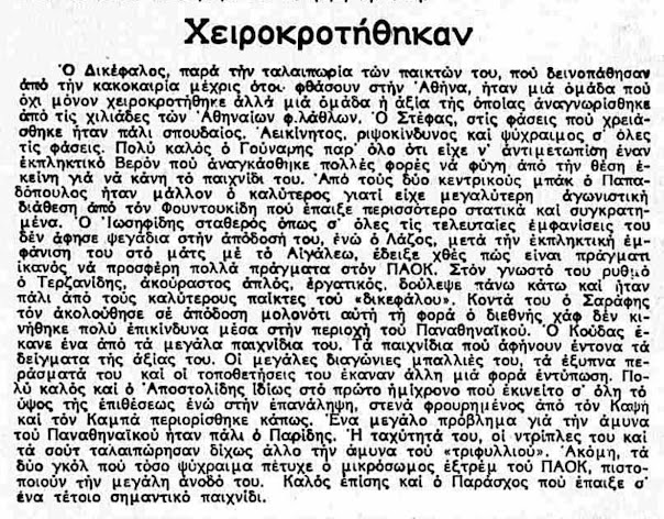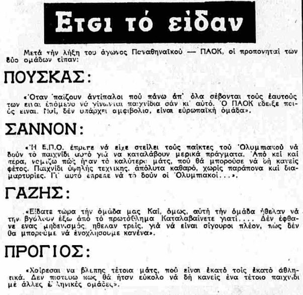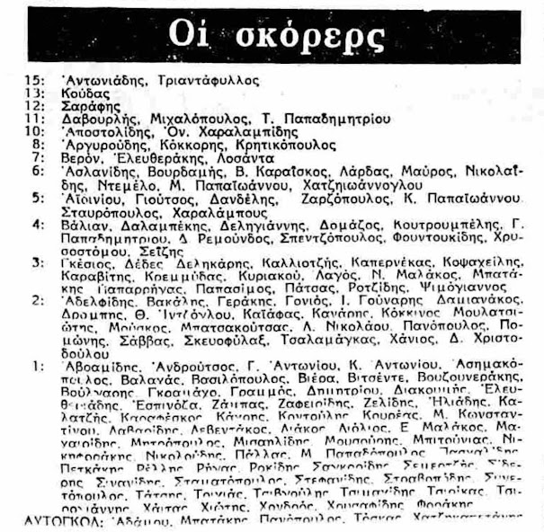 ΠΑΟΚ: Στέφας, Γούναρης, Φουντουκίδης, Παπαδόπουλος, Ιωσηφίδης, Τερζανίδης, Σαράφης, Κούδας, Λάζος, Αποστολίδης, Παρίδης.