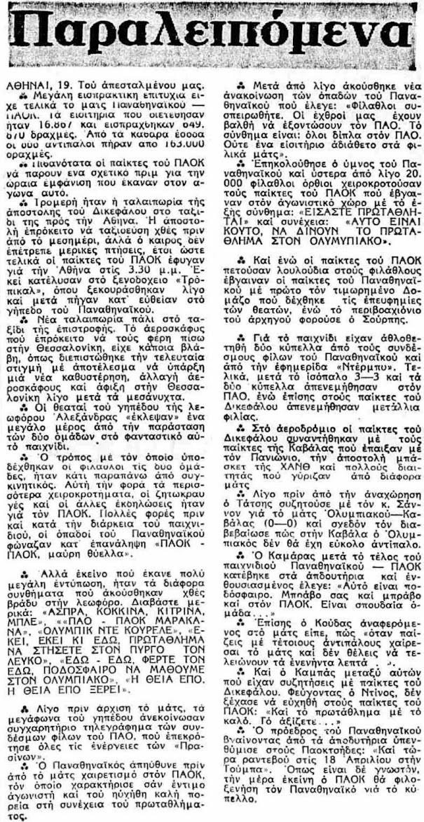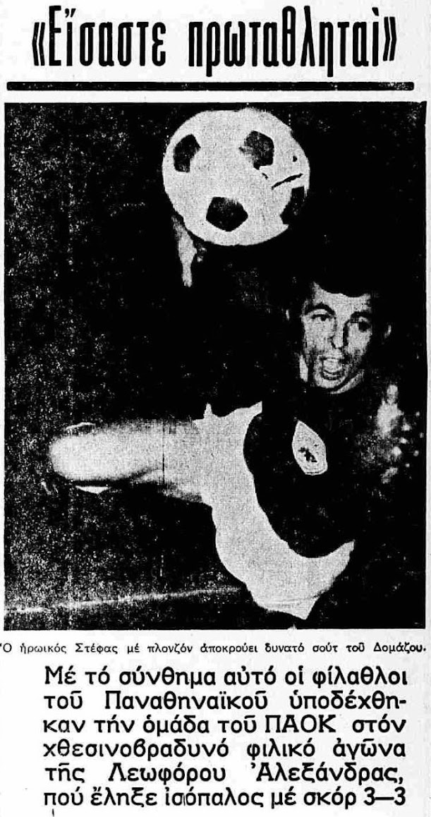 Η πρώτη εκτός έδρας επικράτηση του ΠΑΟΚ επί του Παναθηναϊκού έγινε – λόγω Ολυμπιακού κι επεισοδίων – χωρίς αγώνα. Οι δύο ομάδες, όμως, αναμετρήθηκαν στη Λεωφόρο σε ένα διαφορετικό ματς...