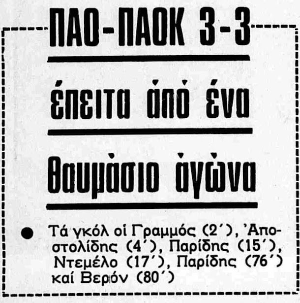 Ο ΠΑΟΚ που βρισκόταν στην κορυφή της βαθμολογίας πήγε στην Αθήνα και οι 16.861 θεατές έγιναν μάρτυρες ενός ξεχωριστού φιλικού ματς που πραγματοποιήθηκε κάτω από το φως των προβολέων και πρόσφερε πλούσιο θέαμα με το τελικό σκορ να είναι 3-3.