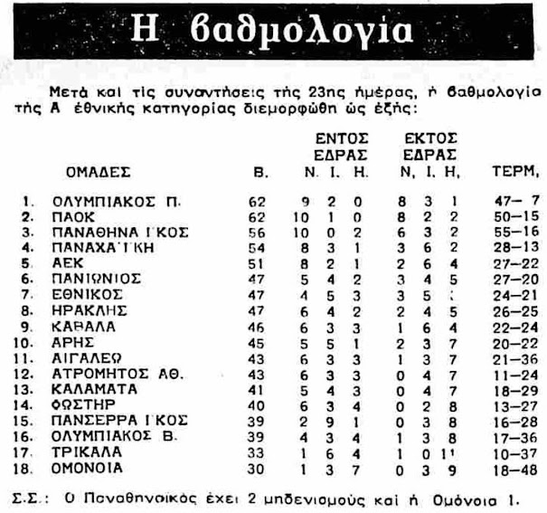 Το πρωτάθλημα στα χρόνια της Χούντας είχε μεγάλη ένταση και πολλές γκρίνιες για τα σφυρίγματα τον διαιτητών. Είναι χαρακτηριστικό ότι για τα 179 παιχνίδια που είχαν γίνει μέχρι τότε χρειάστηκαν 62 διαιτητές.