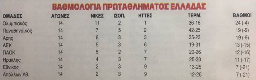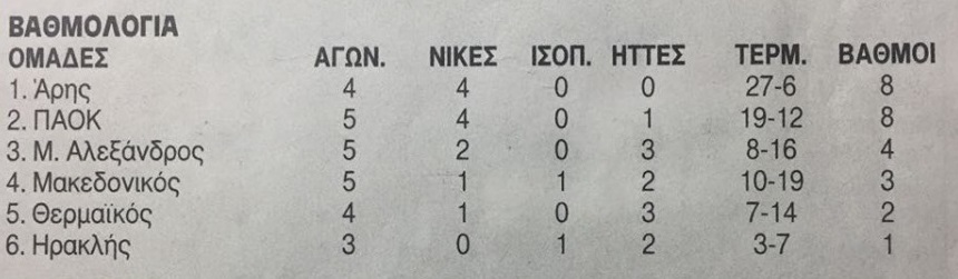 * Από τον Βορρά συμμετείχαν ΠΑΟΚ, Άρης, Ηρακλής και ο Δικέφαλος τερμάτισε στην 5η θέση με 12 βαθμούς σε 14 ματς (5 νίκες, 2 ισοπαλίες, 7 ήττες) με τέρματα 20-26.