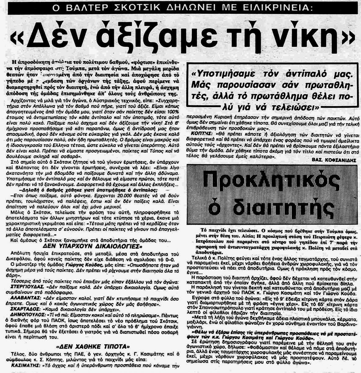 Από aspromavresistories.blogspot.com: Σαν σήμερα στις 27/1/1985, ο πρωτοπόρος ΠΑΟΚ, υποδέχτηκε στην Τούμπα τον Απόλλωνα Αθηνών, για την 16η αγωνιστική του πρωταθλήματος της περιόδου 1984-1985 ...
