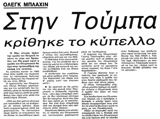 * Η αρχική εικόνα είναι από τον πρώτο τελικό ανάμεσα στις δύο ομάδες, που έγινε στις 20/5/1992 στην Τούμπα.