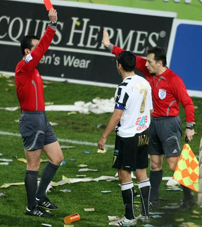 Την κίνησή του αυτή την πρόδωσε όμως η αποβολή του Κονσεϊσάο. Ο αρχηγός του ΠΑΟΚ ήταν πολύ εκνευρισμένος και χρειάστηκε να μπει στο γήπεδο ο προπονητής μας ώστε να αποχωρήσει.